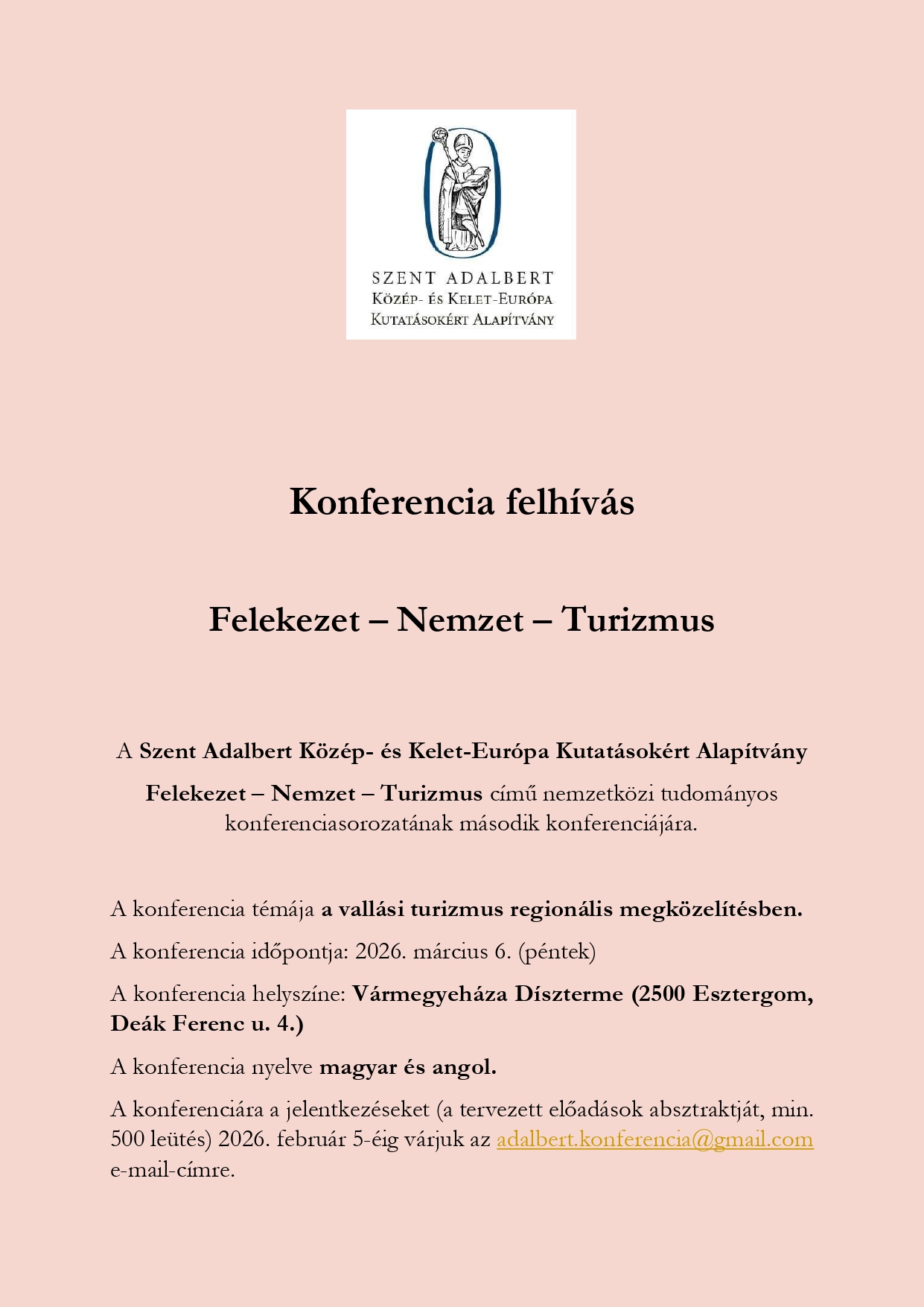 Applications for the conference (abstracts of planned presentations, min. 500 characters) should be sent to adalbert.konferencia@gmail.com by February 5, 2026.